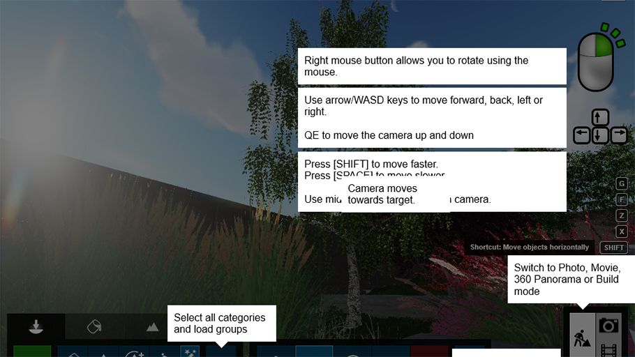 2 stars (lumion landscape shadows and omnishadow off). Hold down this key to temporarily show shadows from spotlights. Theater mode hides the user interface in build mode. The orientation of all objects (apart from trees/plants) can be made to adapt to the surface angles of other objects. View the lumion terrain at the maximum level of detail. Hold down this key to temporarily show the shadows from spotlights. Hold down this key to temporarily show the shadows from spotlights. 4 stars (highest quality level).